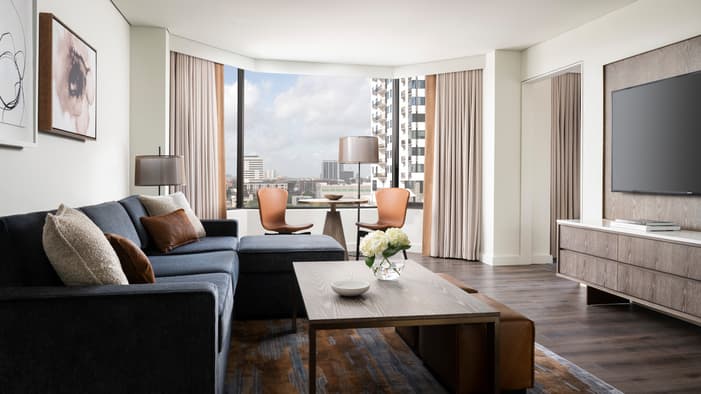 Framed by panoramas of downtown Houston through large bay windows, our Speciality Suites provide space for working, living and relaxing – ideal for guests seeking a luxurious residential-style stay.
