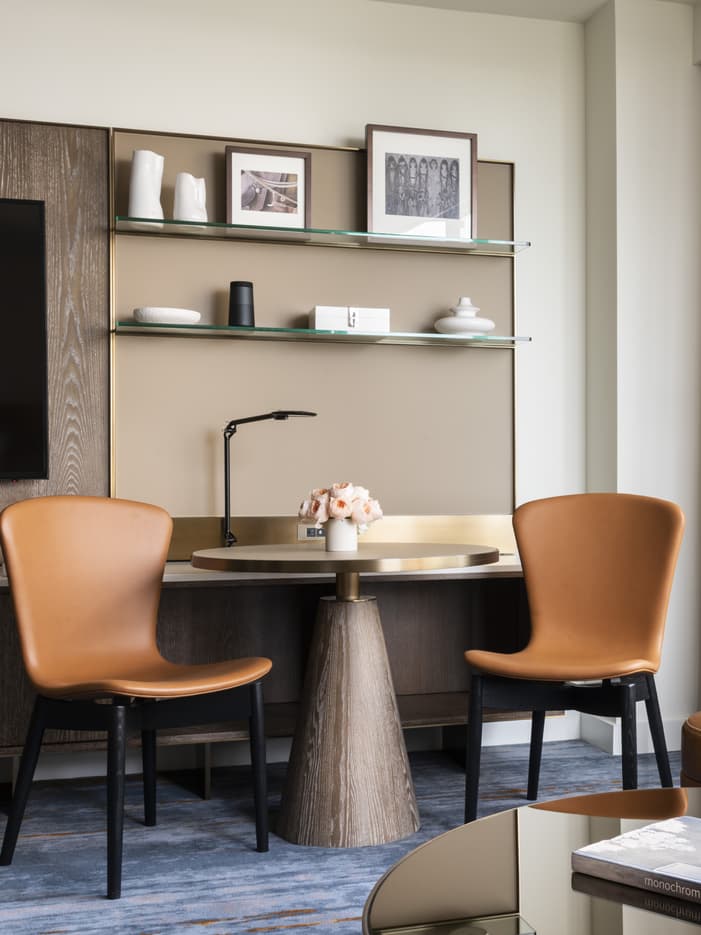 Take in the local artwork, enjoy a Houston-authored book from the comforts of the gently curved chaise, or simply soak in the views of downtown Houston through the large bay windows.