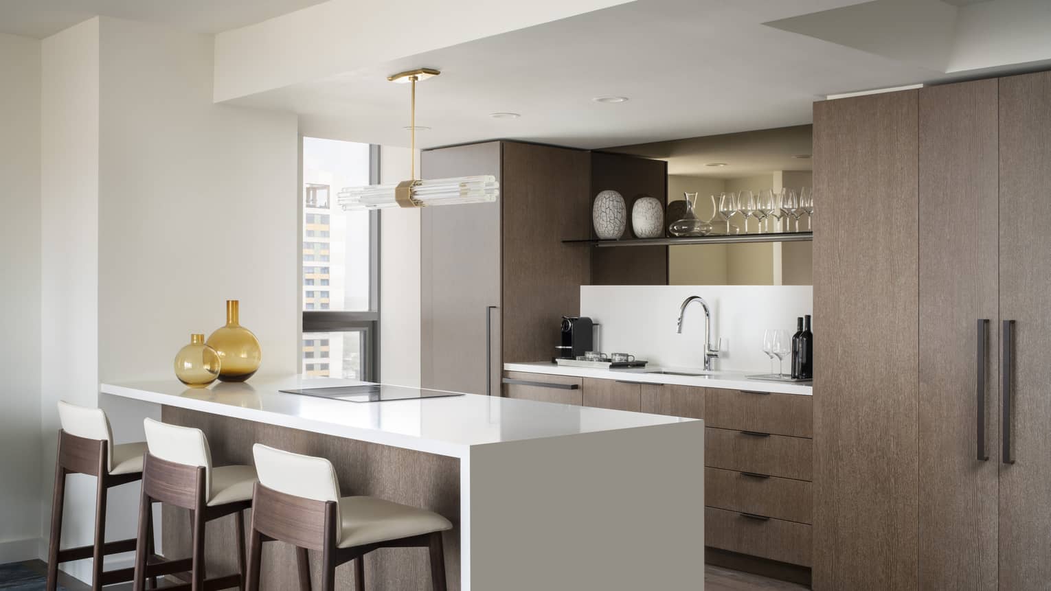 Feel at home on the Hotel’s 25th floor, where this expansive, two-bedroom residential suite offers a recently enhanced kitchen, dining and living area, in addition to its two spacious bedrooms and three bathrooms.