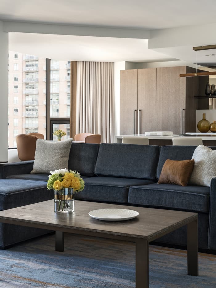 Take in panoramic views of downtown from this recently enhanced, two-bedroom residential suite – perfect for families and friends travelling together. A full gourmet kitchen, washer and dryer unit, and spacious living and dining areas make it easy to feel at home.