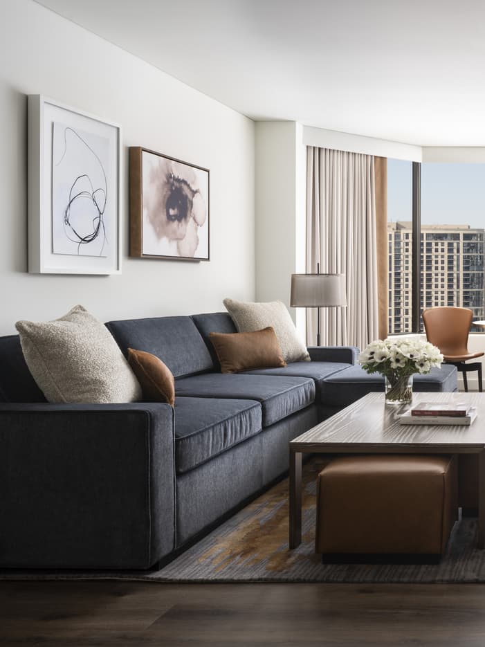 Local art pieces, a wet bar for personal mixology and Texas-inspired colours make this beautifully appointed suite a place to gather with friends at the end of an exciting day in Houston.