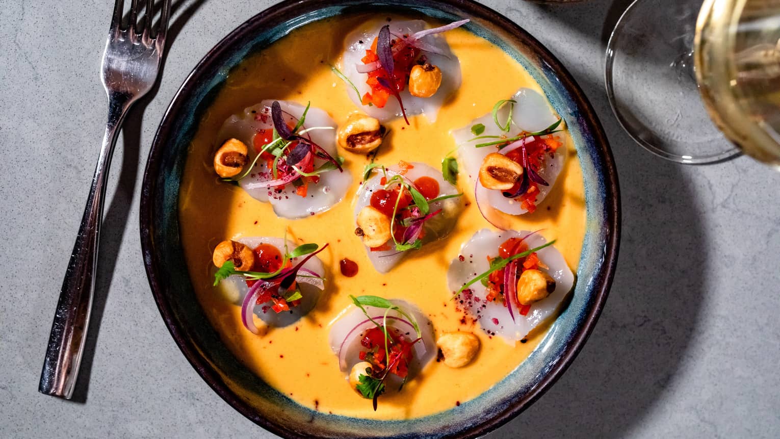 PERUVIAN CEVICHEHamachi, Leche de Tigre, Sweet Potato, Red Onion, Canchas
