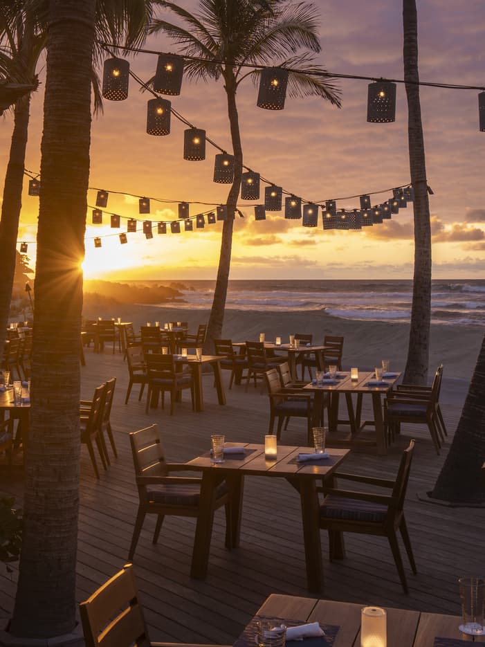 At our beachside lounge and dining room next to our namesake tree at the heart of our Resort, indulge in coastal Italian–inspired cuisine featuring the best ingredients from Hawaii Island farms, ranches and fishermen. Enjoy oceanfront dining and nightly live entertainment while you sample our bountiful selection of wines by the glass, locally brewed beer on tap or handcrafted cocktails. Dinner reservations are required.
