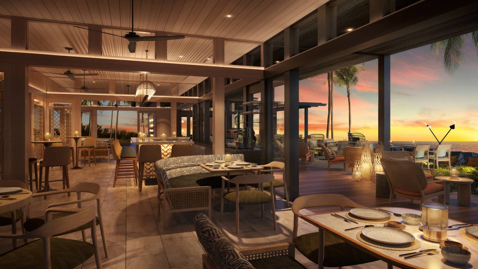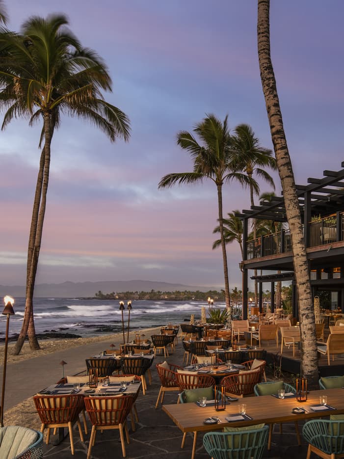 At our beachside lounge and dining room next to our namesake tree at the heart of our Resort, indulge in coastal Italian–inspired cuisine featuring the best ingredients from Hawaii Island farms, ranches and fishermen. Enjoy oceanfront dining and nightly live entertainment while you sample our bountiful selection of wines by the glass, locally brewed beer on tap or handcrafted cocktails. Dinner reservations are required.