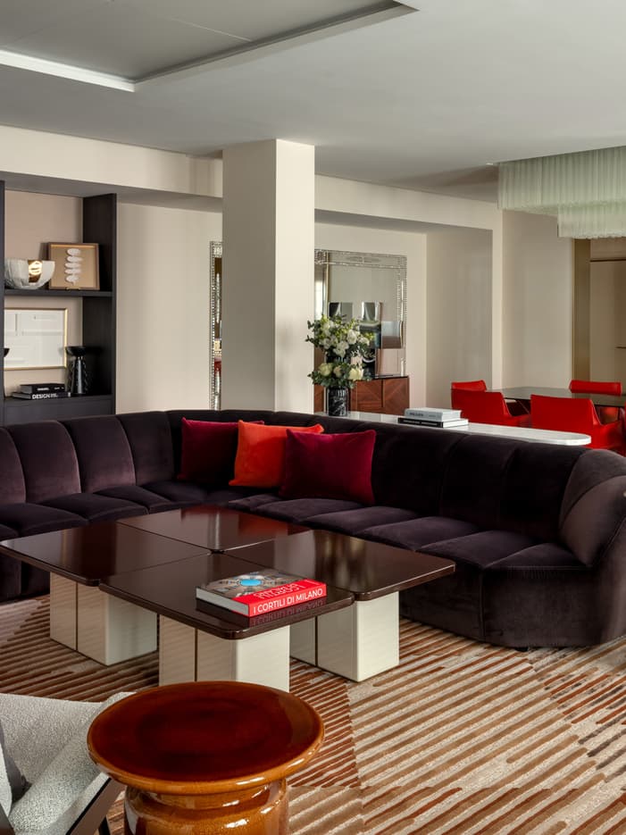 - Ambiente elegante e accogliente, con velluti in tonalità cioccolato e sete color oro e pesca
