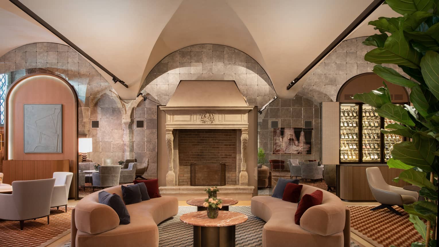 Luci soffuse, raffinatezza e intimità sono gli elementi del nostro Camino. Un luogo per rilassarsi lontano dalla folla o per gustare la nostra selezione di vini e champagne pregiati.