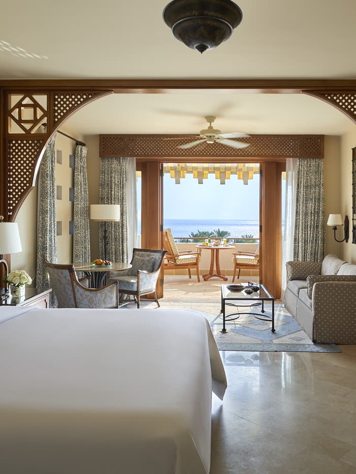 Con viste sconfinate sul Mar Rosso, questa camera accogliente in stile tradizionale offre ampi spazi per rilassarsi, con lounge sia interna sia esterna. Accoccolatevi nel comodo angolo accanto al letto o sulla terrazza o il balcone privati, perfetti per sognare a occhi aperti avventure nel deserto e in mare.