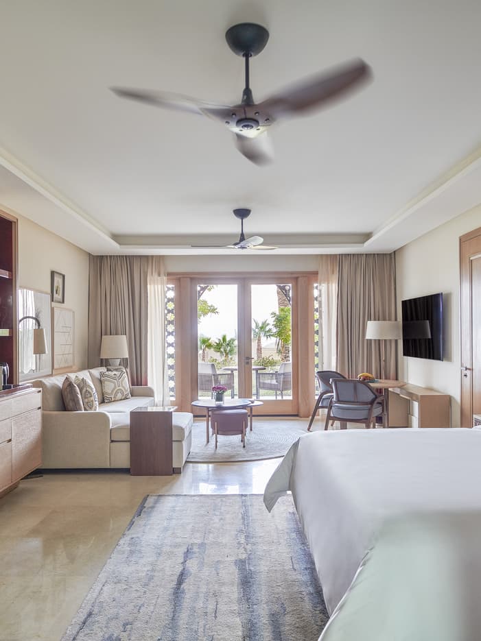 Scoprite il meglio dello stile Four Seasons scegliendo questa ampia camera con eleganti arredi contemporanei e tecnologia di ultima generazione. Rilassatevi nella zona giorno interna o all'aperto sul balcone o la terrazza con vista parziale sul Mar Rosso e l'isola di Tiran. Il bagno in stile spa è un'oasi di benessere, inondato di luce naturale.