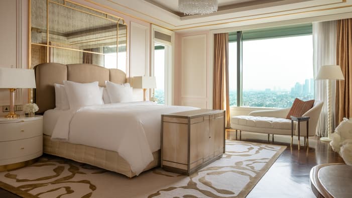 Enjoy luxury accommodations in our stylish suites, featuring Italian marble bathrooms and wall-to-wall windows with bright natural light and views of the city. Whether you’re in Jakarta for business or leisure, our Hotel suites provide all the extra space you could need for your stay, with separate sleeping and living spaces.