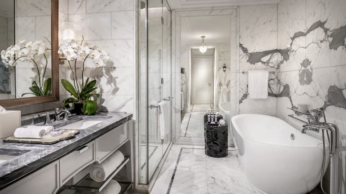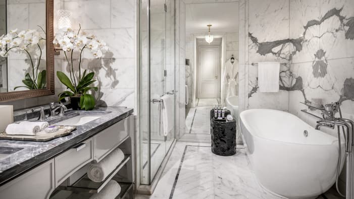 Original Indonesian artwork, rich millwork, gilded accents and lavish Italian marble bathrooms give each suite the unmistakeable feeling of serene opulence.