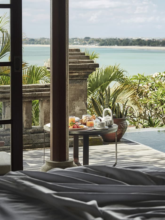 Honeymooners can hide away in this discreet thatched-roof sanctuary inspired by a traditional Balinese courtyard house. Gaze over the ocean from the poolside open-air bale in your hidden luxury villa in Jimbaran Bay.