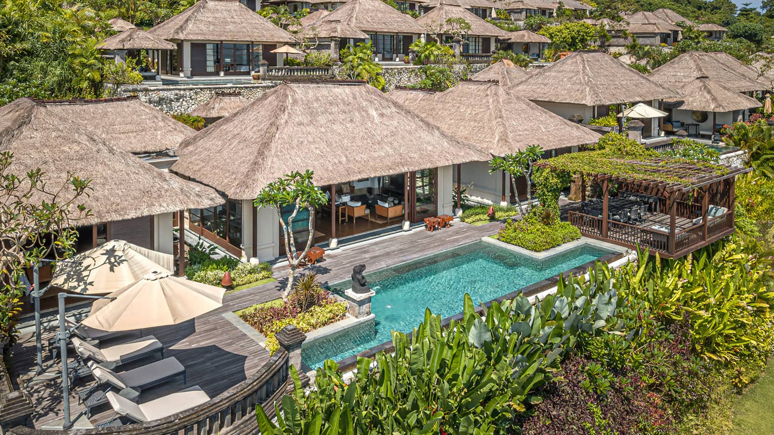 With versatile spaces centered around a pool deck, a dedicated children’s room and the ability to connect to a Premier Ocean Villa for even more sleeping space, this beachfront haven makes the perfect Bali villa retreat for families.