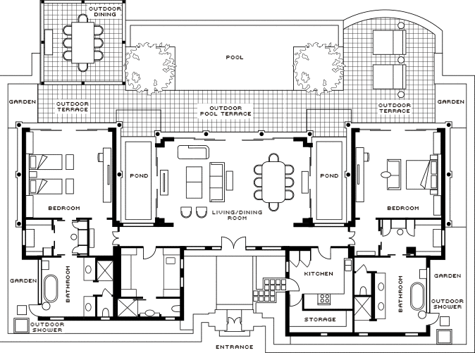- Access to garden with outdoor shower