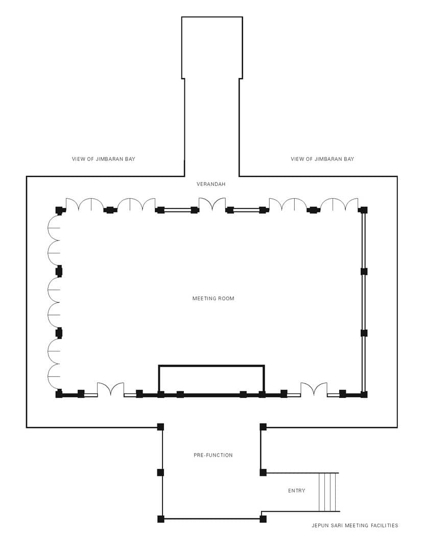 Floor-to-ceiling glass walls elevate meetings by filling Jepun Sari with an abundance of natural light and delivering spectacular views across Jimbaran Bay. A wraparound terrace is the perfect spot for mid-day breaks.