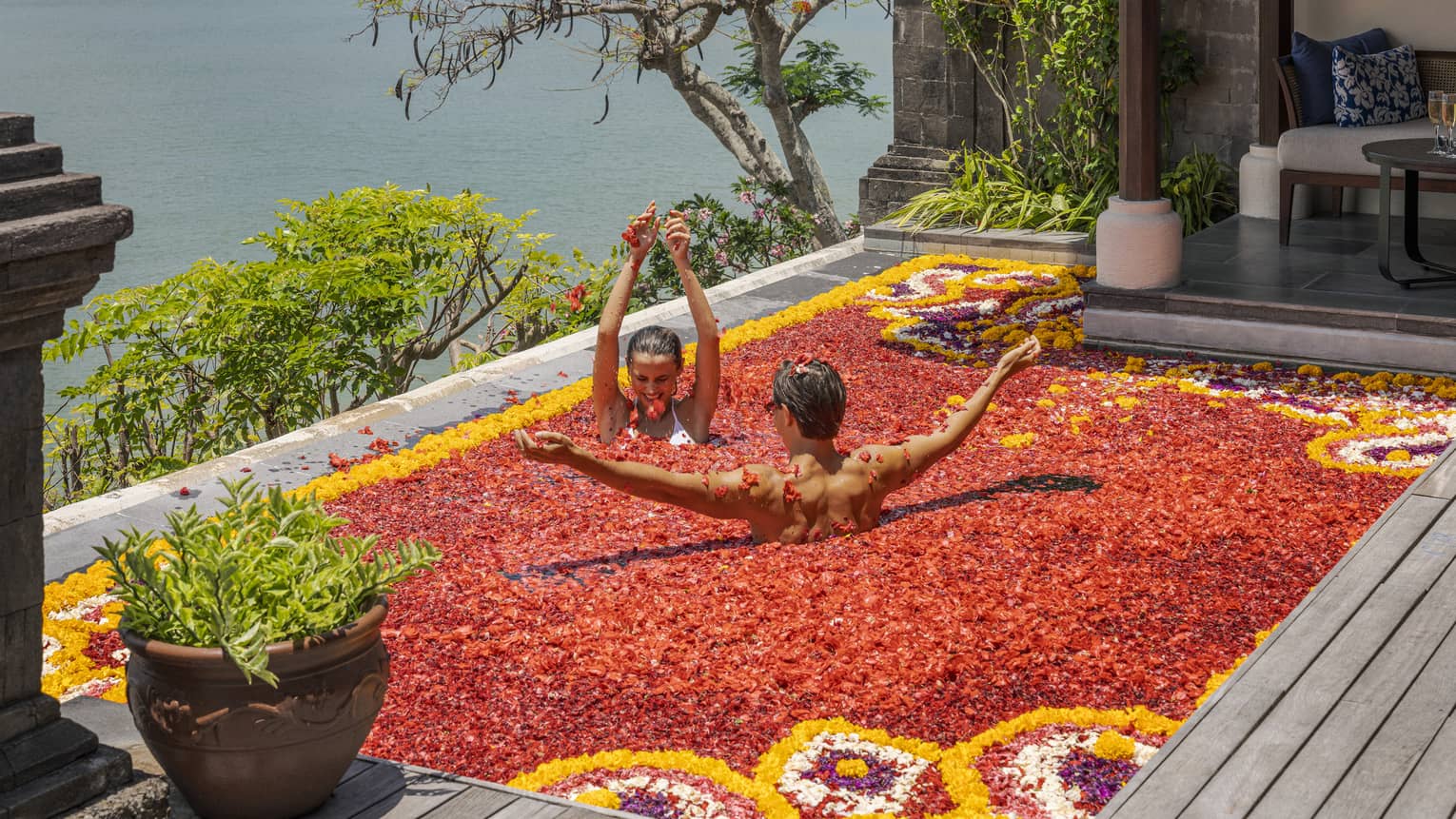 Submit to nature's spiritual embrace with the blissfully restorative 2.5-hour Blessings of Bali spa ritual, based on a traditional journey of self-renewal, or take turns being the "guide" and the "flyer" with the joyful poses in our 75-minute Trust Yoga session.