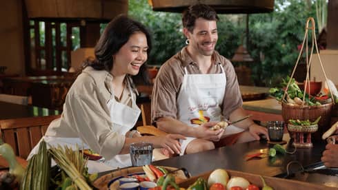 - フォーシーズンズ チェンマイのシェフが講師を務めるクッキングクラスで、料理の腕を磨きましょう。まずはシェフの秘密のガーデンで新鮮なハーブや野菜を収穫します。精霊の家 (祠) に立ち寄ってお祈りをしてから、Rim Tai Kitchen で美味しいタイ料理のレッスンが始まります。レシピと合わせて、タイ料理の基本や調理に必要な道具の扱い方も覚えられます。Rim Tai Kitchen で調理したものをランチとしてお召し上がりください。6つのシグネチャープログラムから選べます:「タイカレーをマスターする」「ラーンナー・オリジン」「ラーンナー・コンテンポラリー」「タイの屋台料理」「タイ全土の料理」「タイのバランスの取れた食生活」 グループクラス:お一人様7,500タイバーツ (ハーブドリンク、コーヒー、紅茶付き) 料金:1クラス1名あたり8,500バーツ++