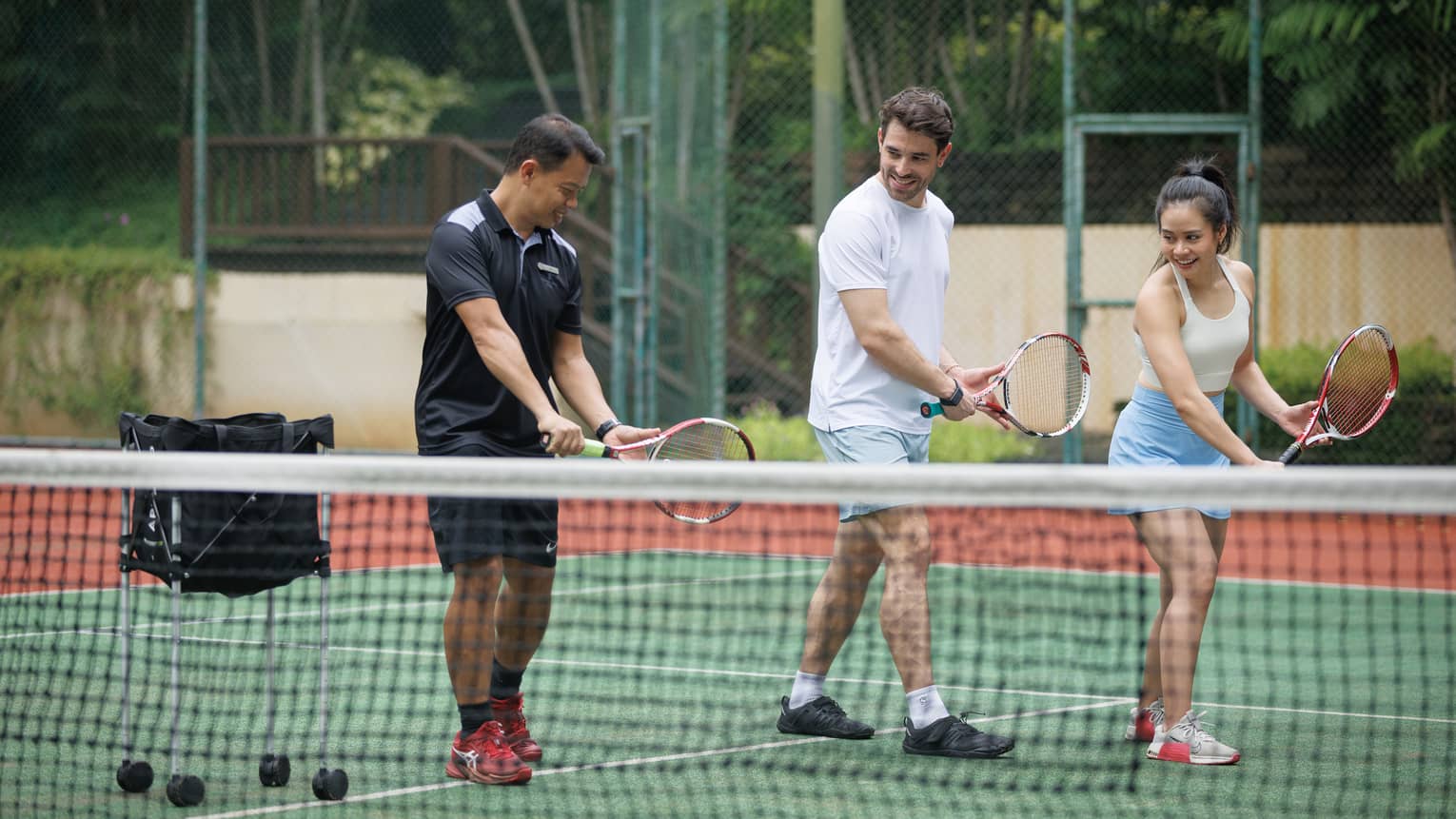 無料のラケットとテニス ボールを持って、夜間のプレーのために照明付きの 2 つの芝生コートに向かいましょう。