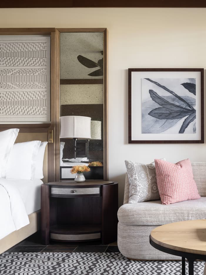 スレートフロア、天然ハードウッドのトリム、地元のアート作品