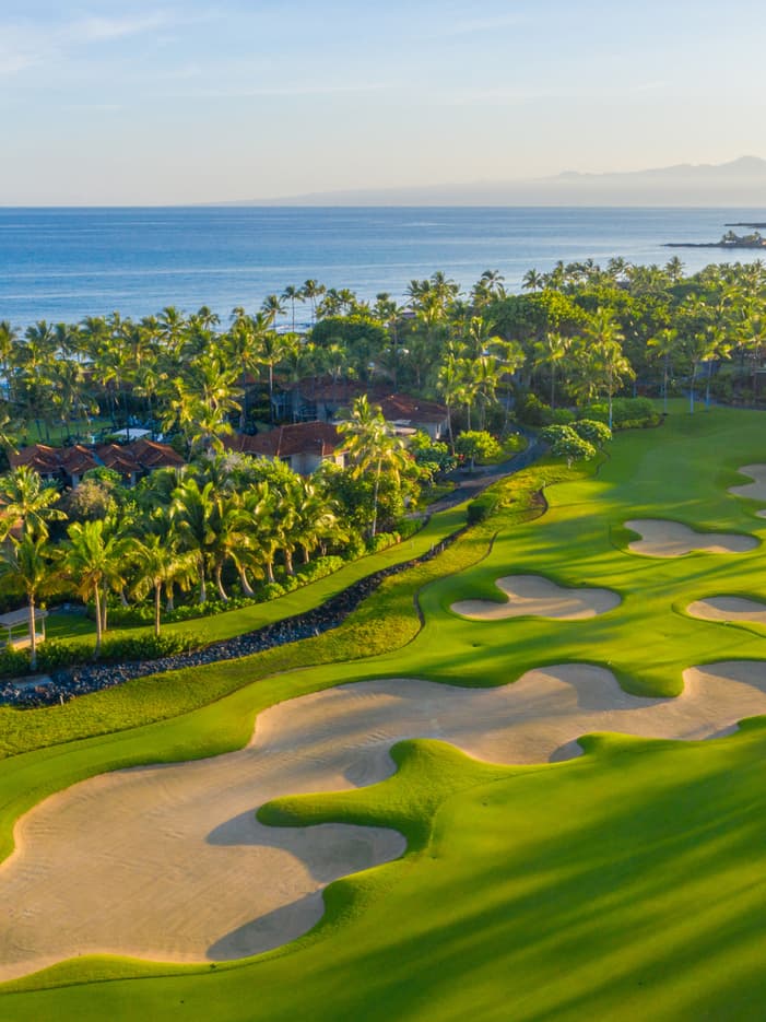 フアラライ・ゴルフ・ハレのショートコースで究極のゴルフ体験を。太平洋に沈む夕日を背景に、ダイナミックなゴルフをお楽しみいただけます。ラウンド後は、美味しいお料理を味わいながら、ゆっくりとおくつろぎください。