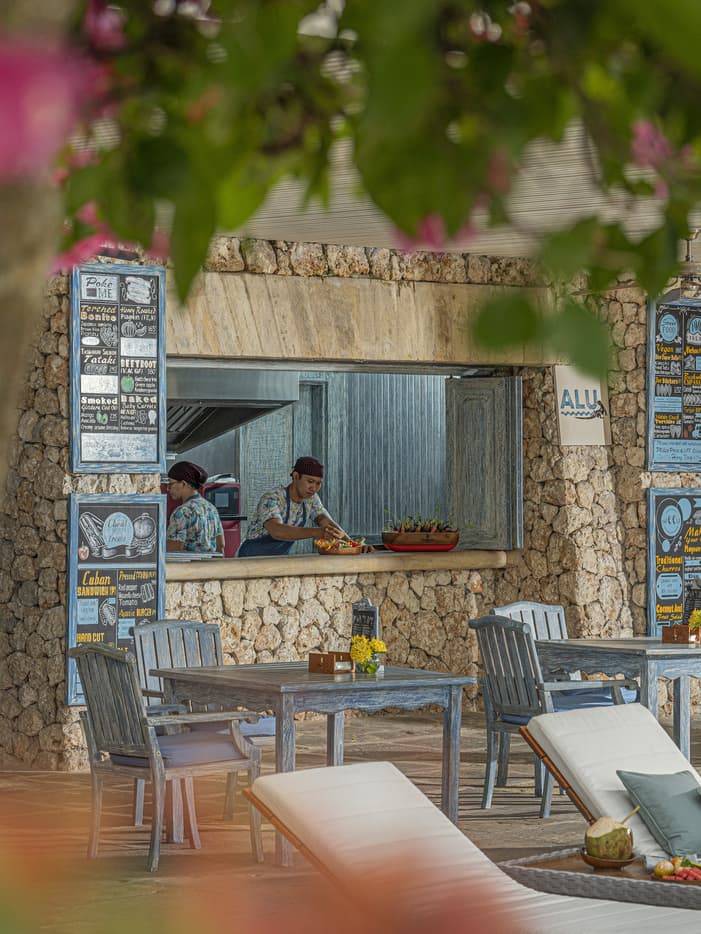 カジュアルなプールサイドカフェ ALU では、ブッダボウル、ポキ、ストリートフード、大皿料理をご用意。ジンバランベイを眺めながら、ヘルシーで美味しい料理をお楽しみいただけます。チートデイのご褒美にぴったりです。