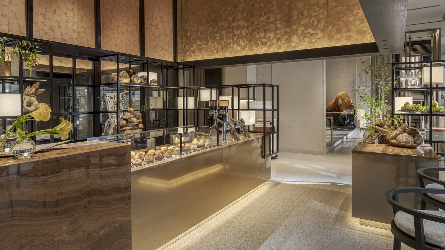 1階のロビーに隣接するベーカリーショップ「ファリーヌ」では、季節のペストリーや焼きたてパン、ケーキなどをテイクアウトのコーヒーと共にご用意しております。ご自宅にてホテルのお味を楽しめるお持ち帰りのグルメランチや、ギフトにも最適な焼き菓子などの商品もどうぞご活用ください。