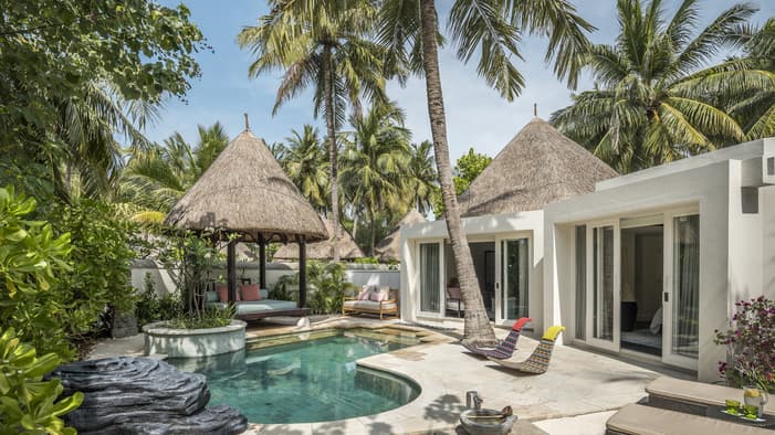 ビーチからすぐの場所にある、広々としたファミリー向けのバンガロー。フルサイズのベッドルーム2室、フリーフォームのプランジプール、プライベートガーデン、オープンエアのガゼボが備わり、ご家族水入らずでゆったりとおくつろぎいただけます。