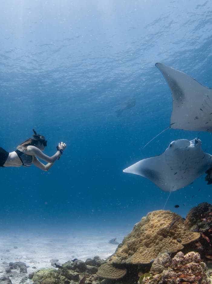 手付かずの自然が残るモルディブの海。スピードボートでマンタやジンベイザメのホットスポットに向かう「マンタ・オン・コール」サファリ(6月~10月)や、モルディブ唯一の常設マンタ研究プロジェクトの見学、美しいラグーンでイルカやウミガメと泳ぐシュノーケリング、サンゴの移植活動など、希少な体験をお楽しみください。毎日の朝食も付いています。