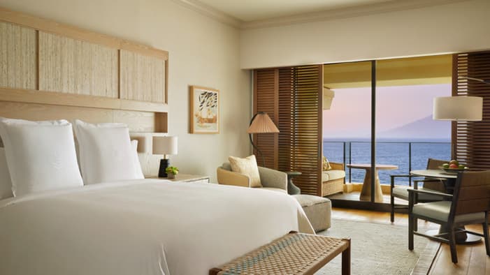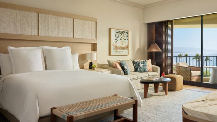 当ホテルのゲストルームは、マウイ島で最大の広さを誇ります。ゆっくりとリゾートステイをお楽しみいただけるよう、プライベートラナイ(バルコニー)、広々としたドレッシングルームとバスルーム、最新テクノロジー、高速Wi-Fiなどの設備をご用意しています。