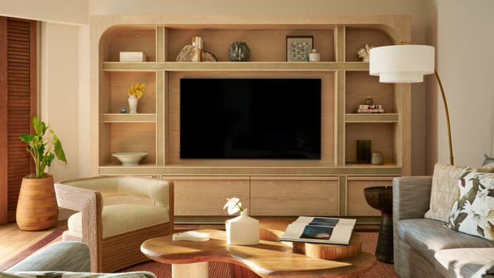 独立したリビングエリアとベッドルーム、プライベートラナイ(バルコニー)、最新テクノロジー、高速Wi-Fi、広々としたドレッシングルームとバスルームなどの設備が備わる、レジデンシャルスタイルのスイートです。ゆったりくつろぎたい方におすすめです。