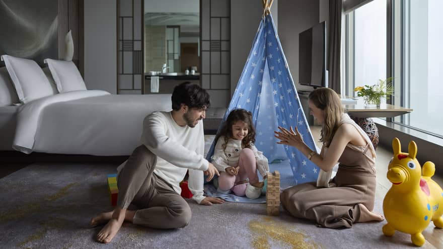 魔法の時間に満ちたキッズテント3~5歳までのお子様とご一緒にて、スイートでのご宿泊の際には、お子様が楽しめるおもちゃやアメニティが詰まったキッズテントをご用意いたします。数に限りがありますので、ご希望のお客様は、ご予約時に宿泊予約課にお問合せください。