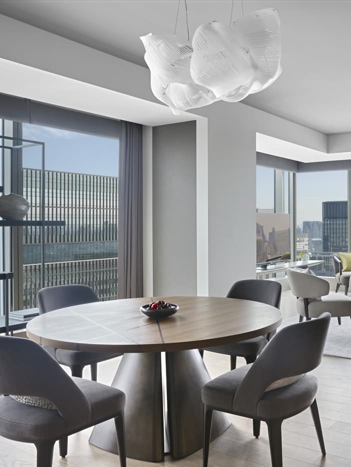 明るく広々としたリビング&ダイニングスペースが魅力のスイート。素晴らしい景色を眺めながら、ご家族でお食事を楽しんだり、お友達と歓談のひとときをお過ごしいただけます。一日の疲れを癒すバスルームにもこだわり、スパのような空間に仕上げました。プライバシーに配慮したレイアウトで、ご家族やグループでのご利用に最適です。