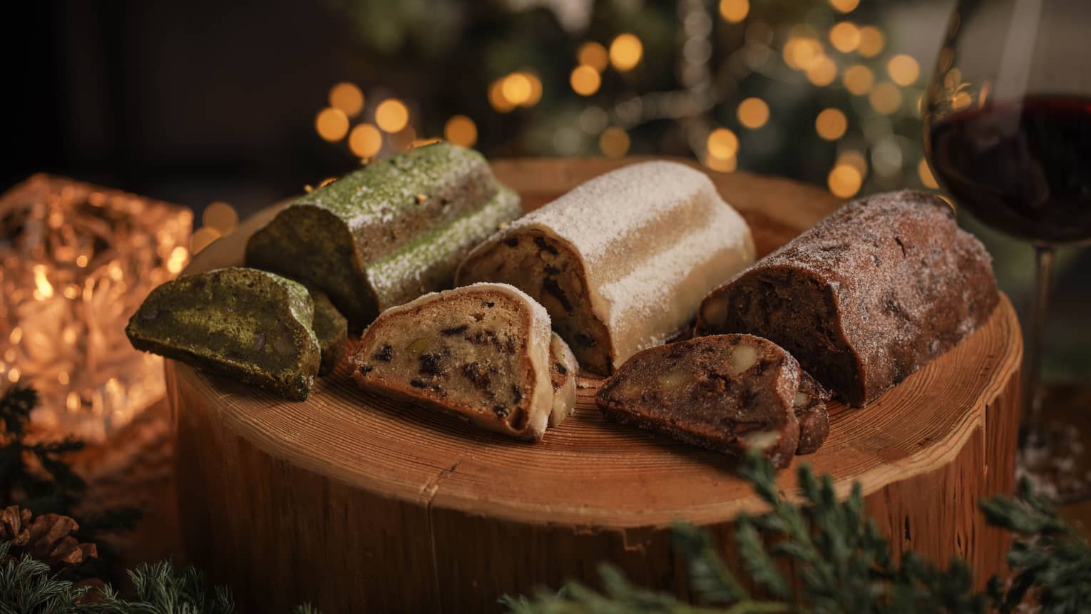 ヨーロッパのクリスマス伝統スイーツ、シュトーレン。フォーシーズンズホテル東京大手町でも伝統の技法を大切にしながらひとつひとつ丁寧にお作りしております。今年は3種類のお味をご用意しており、プレーンはバターたっぷりのしっとり生地に、ピスタチオやアーモンド、レーズン、イチジク、クランベリー、オレンジなどシュトーレンお馴染みのフルーツをぎっしりと詰めております。ショコラや抹茶もございますので、いつもとは違うお味もお愉しみいただけます。日に日にそれぞれの味わいがじっくりと馴染み、美味しさを増すシュトーレンを少しずつ毎日食べながら、クリスマスまでのお時間をゆっくりとお愉しみください。||予約期間:2025年10月1日(水) ~12月22日(月)||受取:2025年12月1日(月) ~12月25日(木)13:00~19:00(ザ・ラウンジにて)||料金:3,500円 (プレーン、ショコラ、抹茶)