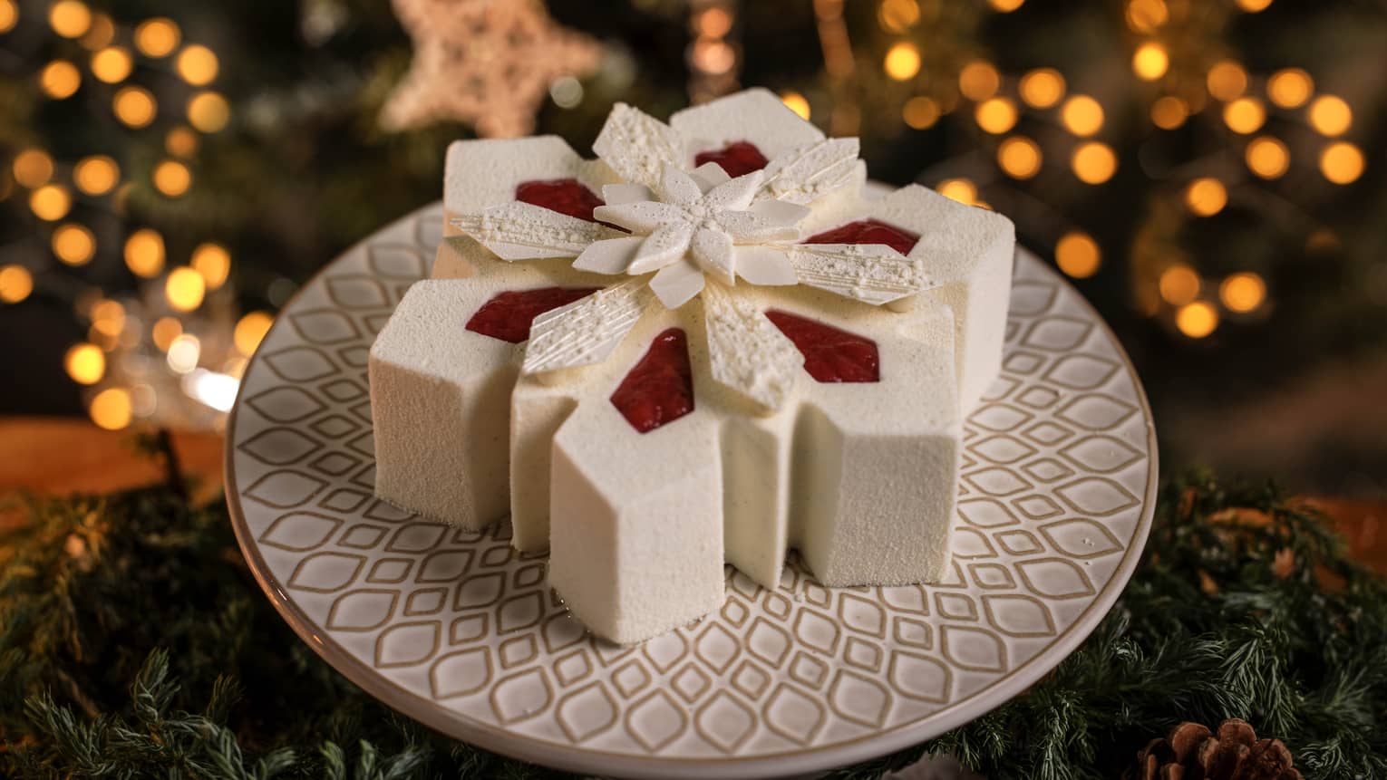 エレガントな冬を象徴するクリスマスケーキが登場いたします。賑わいの場で誰もが親しみを感じられる風味豊かなホワイトチョコレートとフランス産のフレーズ・デ・ボワをベースとして、ヨーロッパの伝統的なクリスマスケーキを参考に作られました。隠し味にはクリスマスに欠かせないシナモンやカシスの酸味を忍ばせ、さらにピスタチオの食感のアクセントを加えることで、一口ごとに重層的な味わいが広がり、心弾むようなクリスマスの余韻を楽しめます。また、ホワイトチョコレートのパウダーが雪のヴェールのごとく纏い結晶の形を象った「スノークリスタル」は、おひとり様用に切り分けてもエレガントなフォルムのままお愉しみいただけます。||予約期間:2025年10月1日(水) ~12月22日(月)||受取:2025年12月1日(月) ~12月25日(木)13:00~19:00(ザ・ラウンジにて)||料金:8000円(14.5cm)