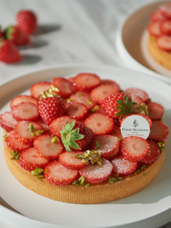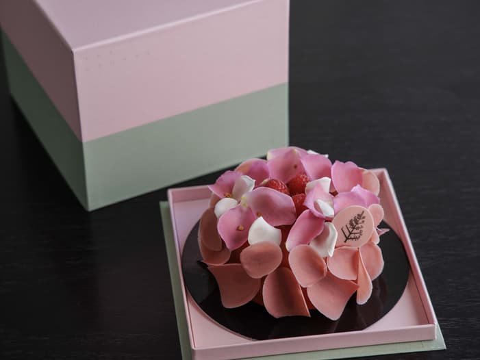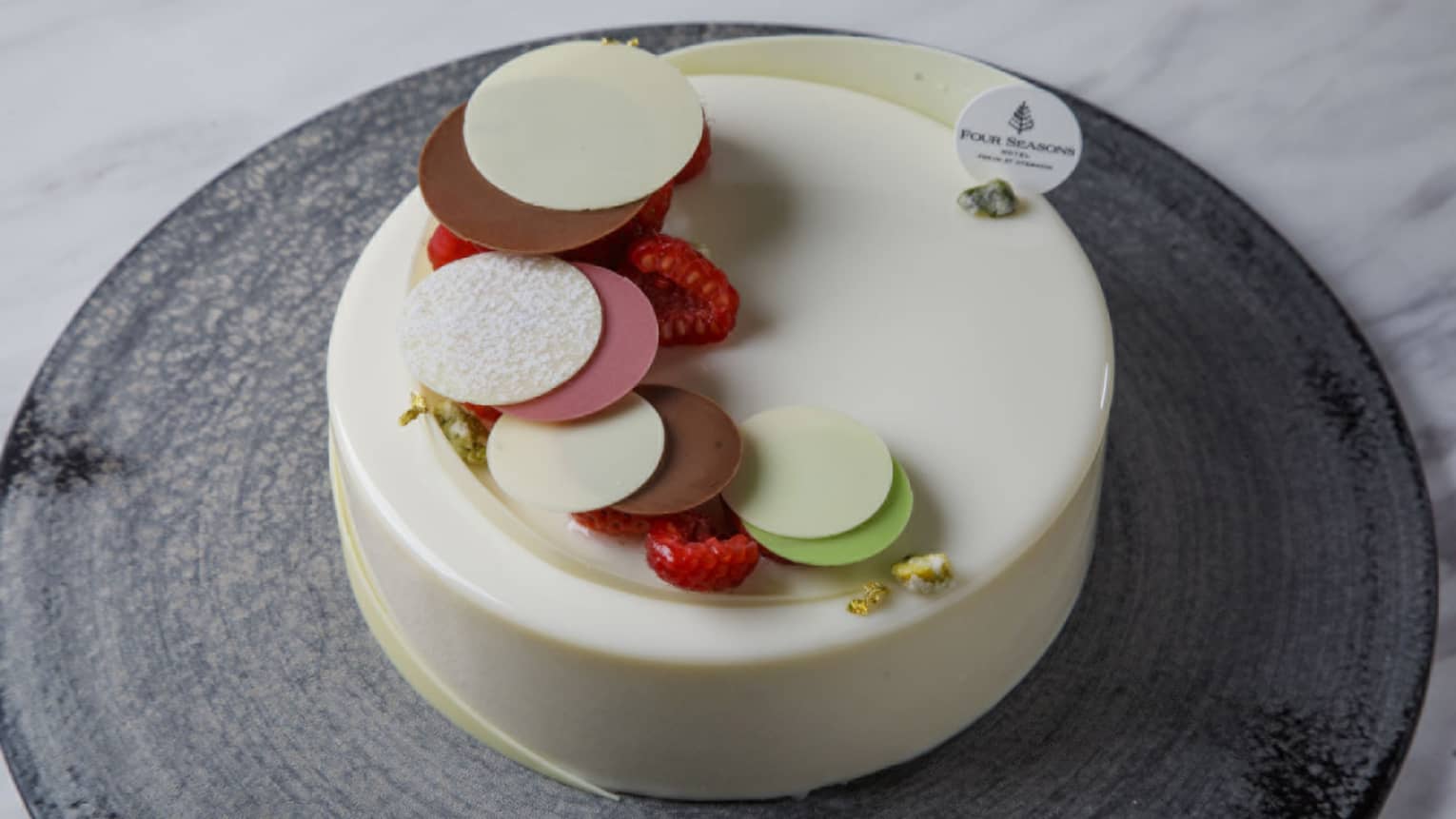 ホワイトチョコレートムースの中心に、グリオットチェリーのコンフィチュールとピスタチオムースを入れ、メープルシロップの生地で構成させております。ご自分へのご褒美はもちろんご挨拶やちょっとしたお手土産など、送る方へ幸せを彩る贈り物はフォーシーズンズホテル東京大手町のテイクアウトケーキを。||料金:12センチ5,000円、15センチ6,000円 *お受け取り希望日の3日前までのご予約が必要となります。