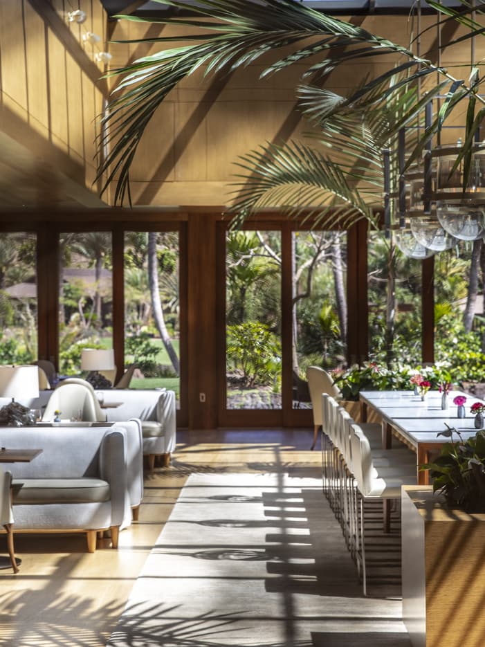 池の畔に建つガラスのパビリオンを利用したレストラン。美しい自然に囲まれた優雅な空間で、朝食、ランチ、ディナーをご提供しています。屋内外にお席があり、16人掛けの大きなコミュナルテーブルでは他のゲストとの交流を楽しんだり、ご家族やお友達と和やかなひとときをお過ごしいただけます。また、プライベートスパハレやプールサイドでもお食事ができるほか、Four Seasons Resort Lanaiのダイニング施設もご利用いただけます。