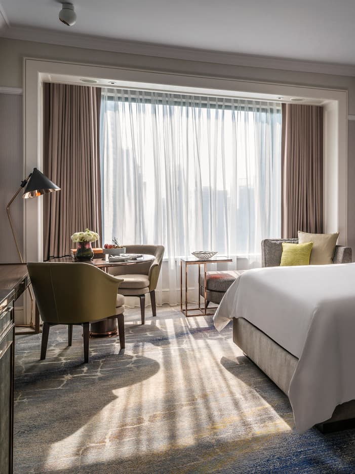 シンガポールを代表するショッピング街、オーチャード通りに面したお部屋です。大きな出窓からシンガポールの街並みが一望でき、自然光がたっぷり入ります。電動で開閉する遮光カーテンを閉めれば、いつでもゆっくりお休みになれます。