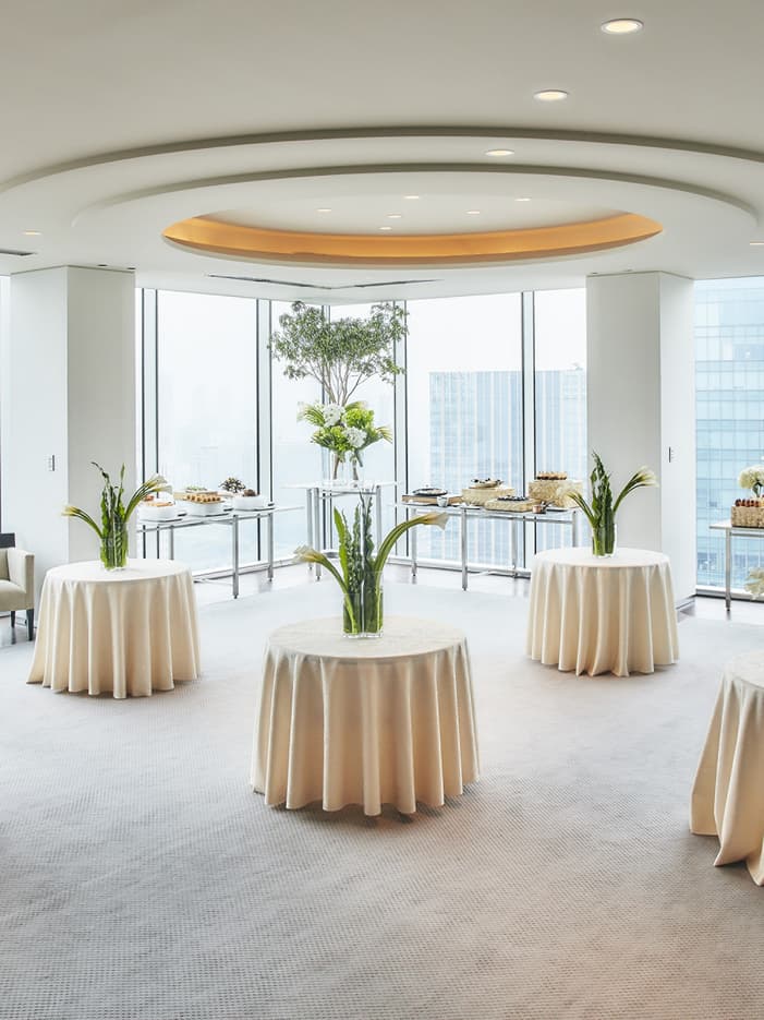 エグゼクティブ ミーティング プラン床から天井までの大きな窓に囲まれ、開放感溢れる31階の「エグゼクティブ ダイニングルーム」では、ビジネスミーティングや接待、イベントなど、少人数向けの特別プランをご用意しています。最大8名様までご利用いただけ、朝食やランチの時間帯に合わせて柔軟に対応いたします。レインボーブリッジや東京タワーを一望できる壮大な景色を眺めながら、効率的かつ上質なひとときをお過ごしください。