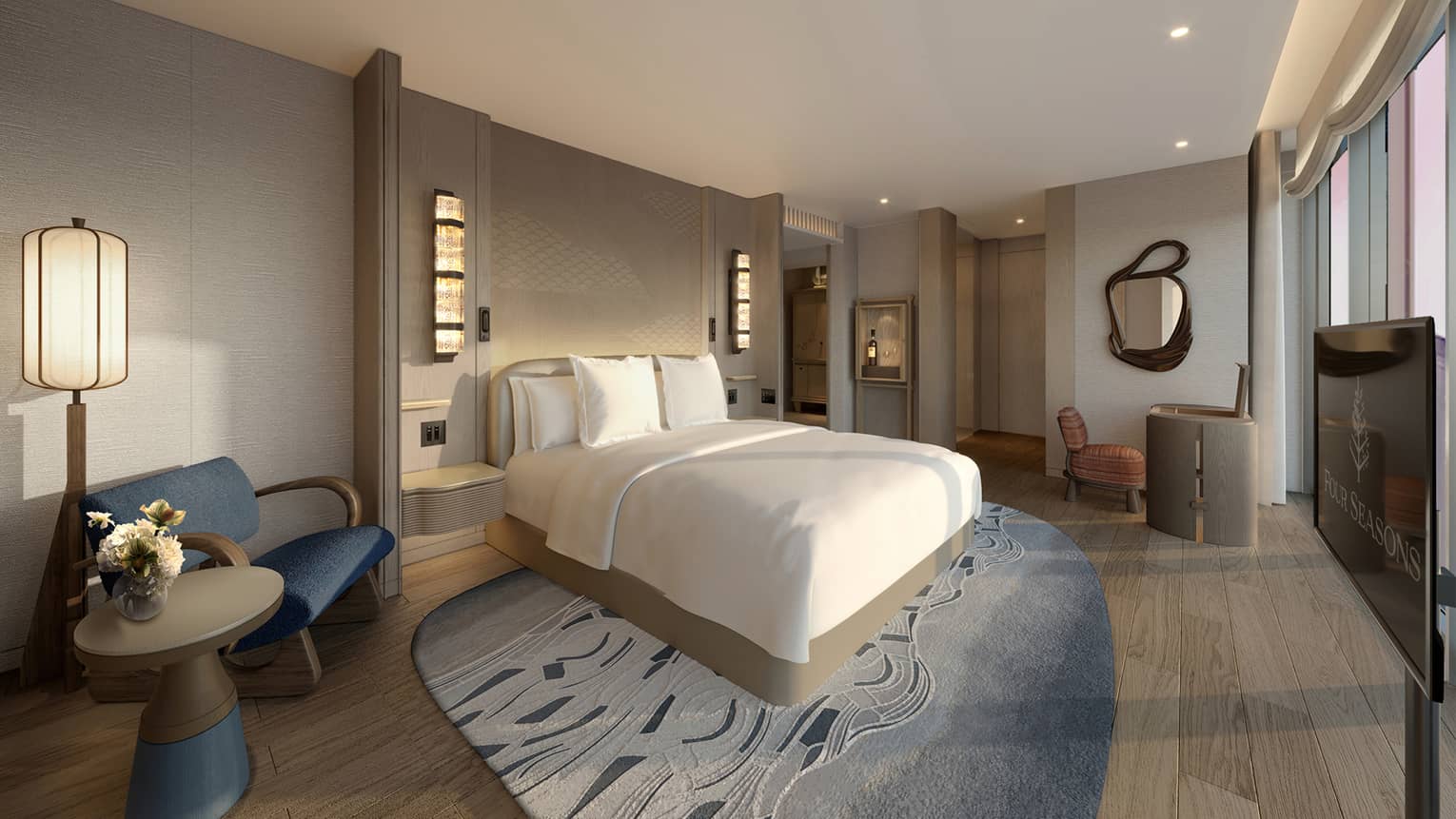 世界的建築家アンドレ・フーが手がけた新しい客室は、日本の美意識とモダンデザインが調和する空間。オーダーメイドの家具やアートに包まれた洗練のしつらえが、まるで邸宅に滞在しているかのような心地よさをもたらします。