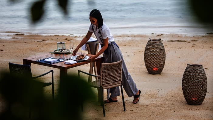 Tune into the sound of lapping waves under the star-lit sky at the Private Beach Sala. Embark on a four-hands healing journey, combining Tibetan singing bowls and a warm lava shell massage by the sea, followed by a coconut and lotus petal bath in your private villa for complete relaxation. Monogrammed robes included. 150 minutes: THB 36,000 per couple. Advanced booking is recommended.