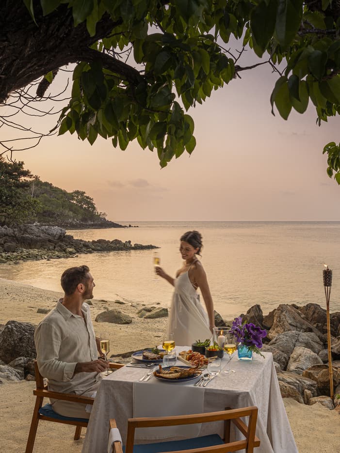 Toast to your love as newlyweds under a blanket of stars during a candlelit Thai-style sala. An authentic Thai menu, paired with carefully chosen wines, is served to your private perch overlooking the ocean.