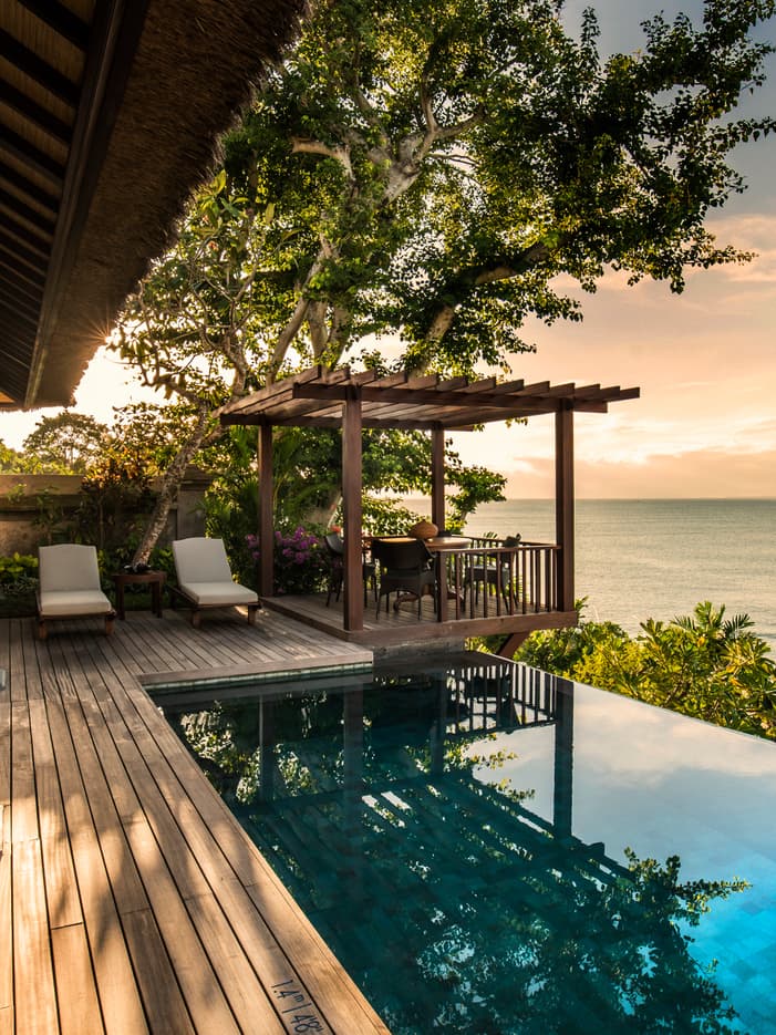 인피니티 수영장과 테라스 라운지 옆의 발레(발리식 퍼걸러)에서 야외 식사를 즐기며, 실내 공간과 외부 공간이 연결되는 새로운 경험을 만끽해 보세요.