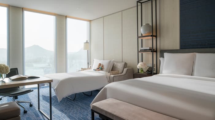 출장 혹은 가족여행 모두에 이상적인 넓은 공간을 가진 스위트에서 나와 모두를 위한 최상의 휴식을 취하세요. 럭셔리하고 안락한 침실공간과 별도의 거실공간은 홀로 또는 함께 다채로운 시간을 보내기 충분합니다.
