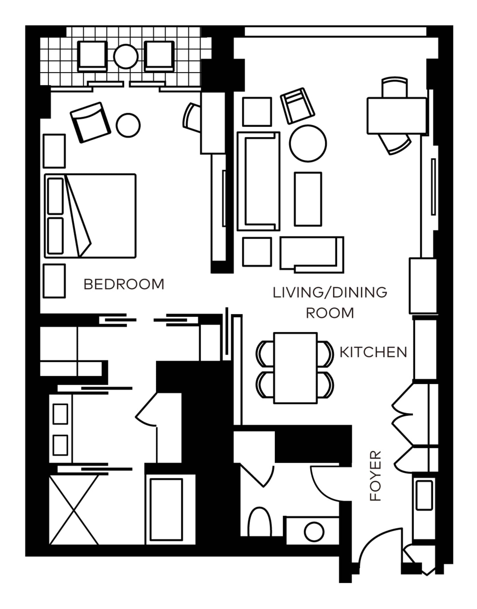 - Unique Features- Separate living and sleeping rooms; Fully equipped kitchen with dishwasher; Washer and dryer; iPad to access Hotel services; Private balcony