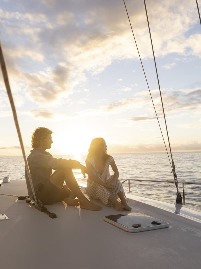 Set sail together alongside the cliffs of Lanai.