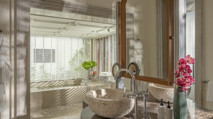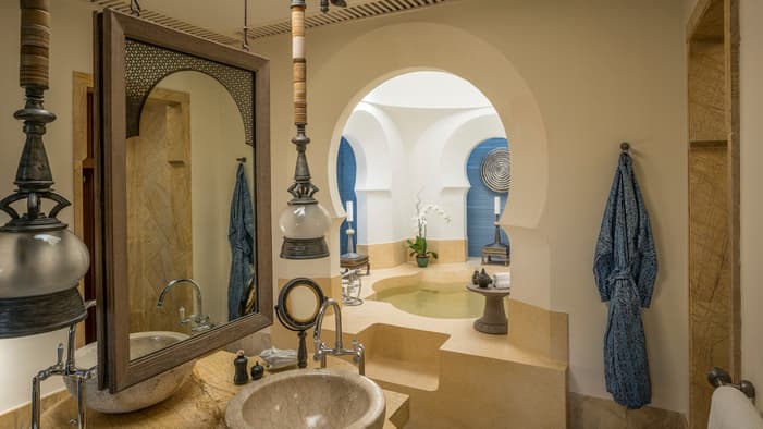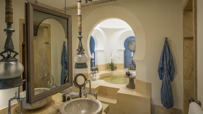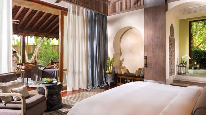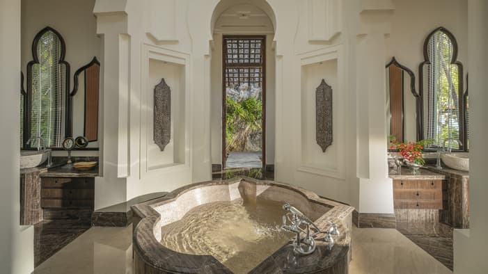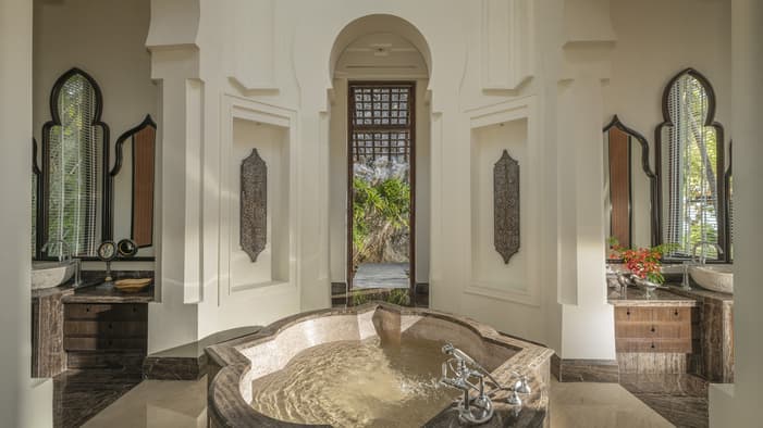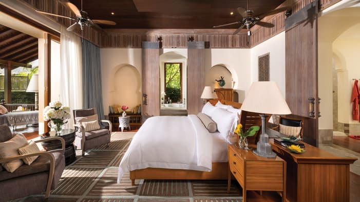 Soaring wood-beamed ceilings and breezy indoor-outdoor living spaces show off the finest in Malay craftsmanship, while hammam-style bathtubs and ogee-arched doorways lend a bit of Moorish flare to our unique accommodations.
