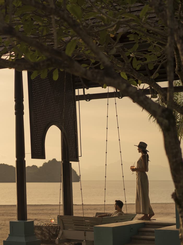 Welcome to Rhu Bar, the quintessential Langkawi beach bar at Four Seasons Resort Langkawi. Cozy up in cushioned wicker chairs or hanging swings before treating yourself to tropical cocktails and a variety of beers and wines. Pair your drinks with savoury snacks complemented by sunset views.