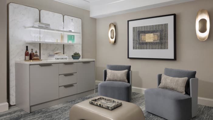 Our newly refreshed guest rooms and suites elevate the luxury experience with natural elements complemented by a sophisticated earth-tone palette. Notable features include new artwork, innovative lighting concepts, tasteful wall accents, plush floor coverings and a well-appointed private bar. Through subtle colours and the integration of desert-inspired elements like wood and metal, we capture the distinctive beauty of our desert surroundings while embracing our vibrant city setting.