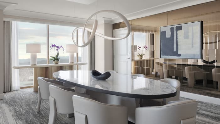 Four Seasons Hotel Las Vegas offers a variety of luxury accommodations including stylish guest rooms and Las Vegas hotel suites with unparalleled views. We also offer a variety of guest rooms and hotel suites with views of the stunning Allegiant Stadium, as well as a variety of accessible rooms. Indulge in our penthouse and presidential suites, and experience unbeatable Las Vegas luxury at Four Seasons.