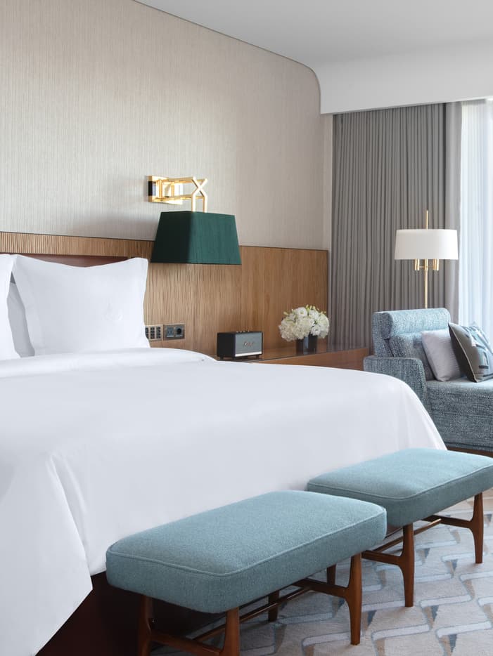 Inspired by the Hotel’s original 1950’s style, these comfortable rooms offer private terraces perfect for morning coffee. Steeped in symbolism, the chairs are modeled after the 1959 Card Room and add luxury with their rich blue and teal crushed velvet accents.