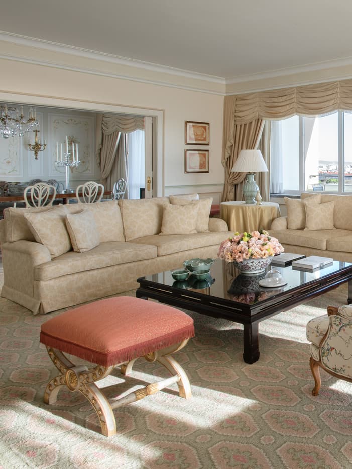 A grand marble entrance welcomes you to this top-floor corner suite, whose living and dining rooms were made for entertaining; a tranquil bedroom offers commanding views of St. George's Castle and the Basílica da Estrela.